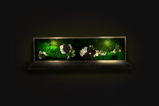 Abstract Garden Handmade Plant Shelf | Moss Artwork | Natural Oak and Plants Shelf | Unique Home Decor Piece | Original LED Wall Art