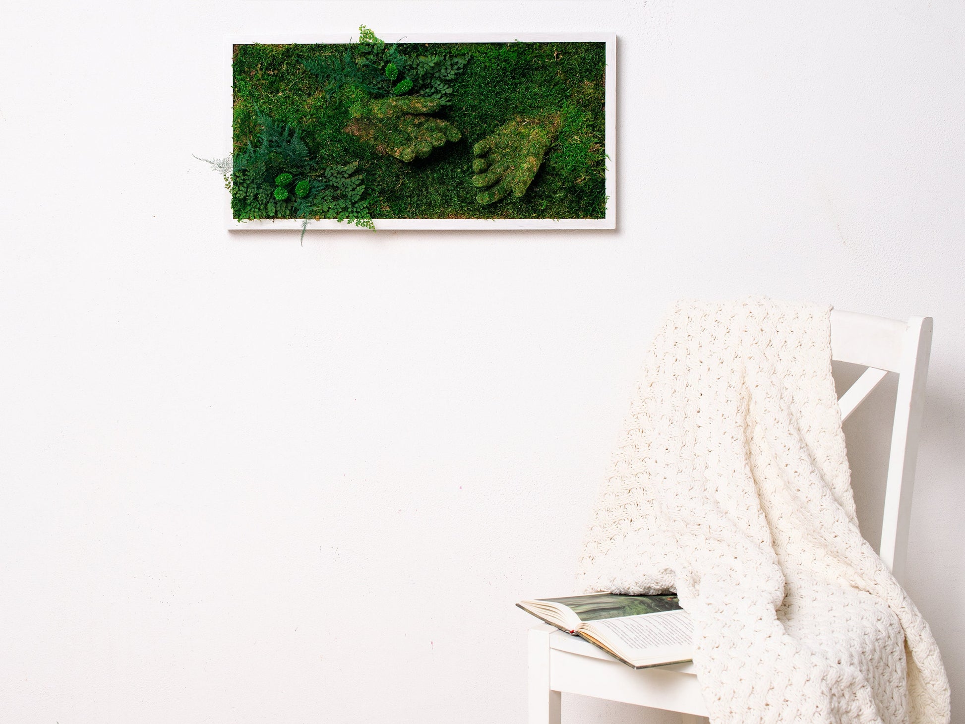 The centerpiece of this wall art is the preserved moss, which is carefully selected and arranged by hand. The moss is live and natural, providing a fresh and organic feel to your interior. The use of preserved moss ensures that the wall art remains green and vibrant for a long time, requiring minimal maintenance.