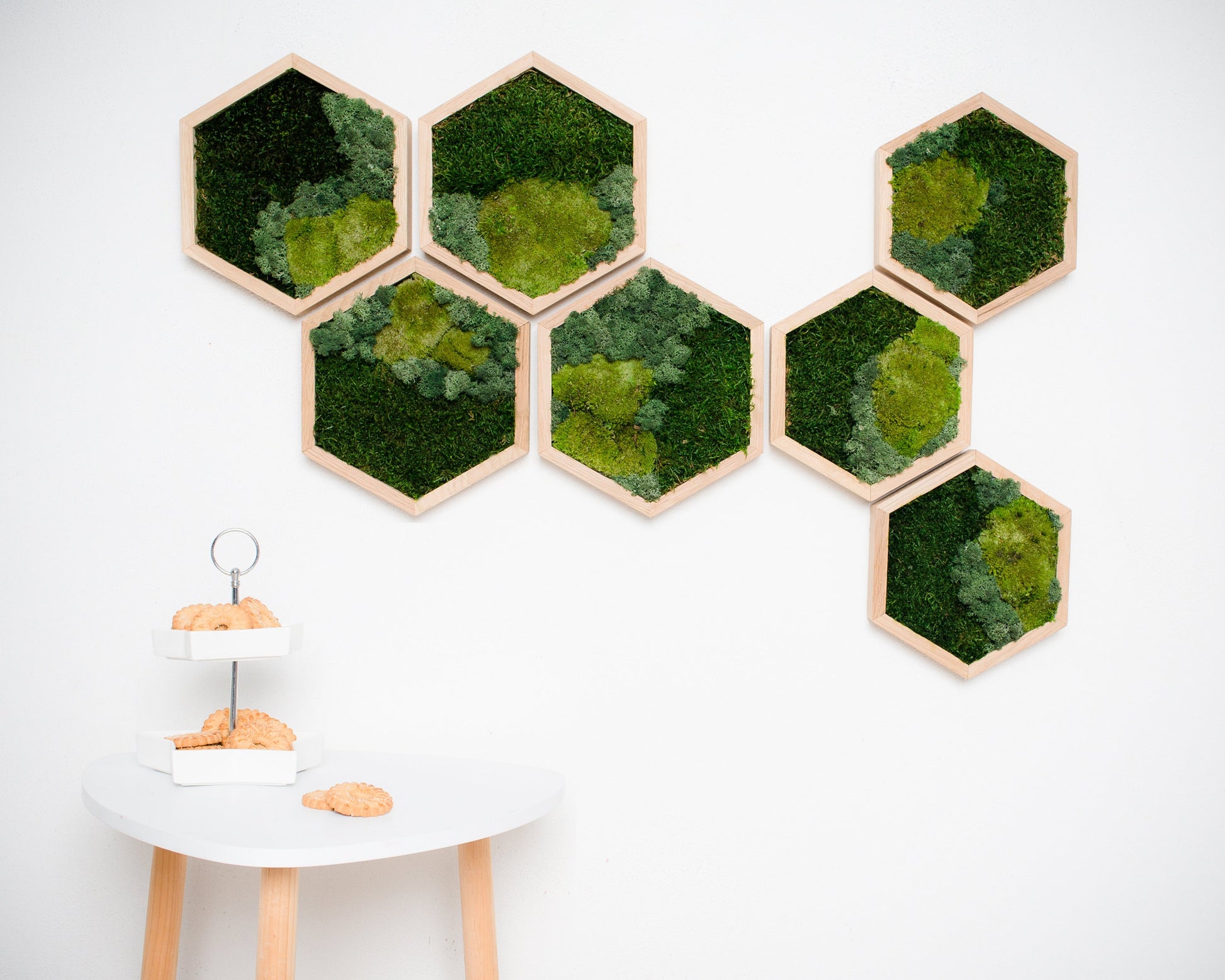 Enchanting Honeycomb Moss Wall Art Set of 7: A Unique Vertical Garden Christmas Gift!