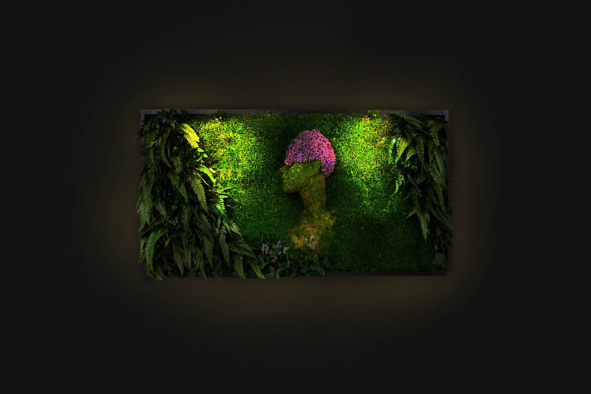• Materials: oak, live moss, preserved moss, plant wall art, live plants, natural plants, natural wood, Reindeer moss, wood