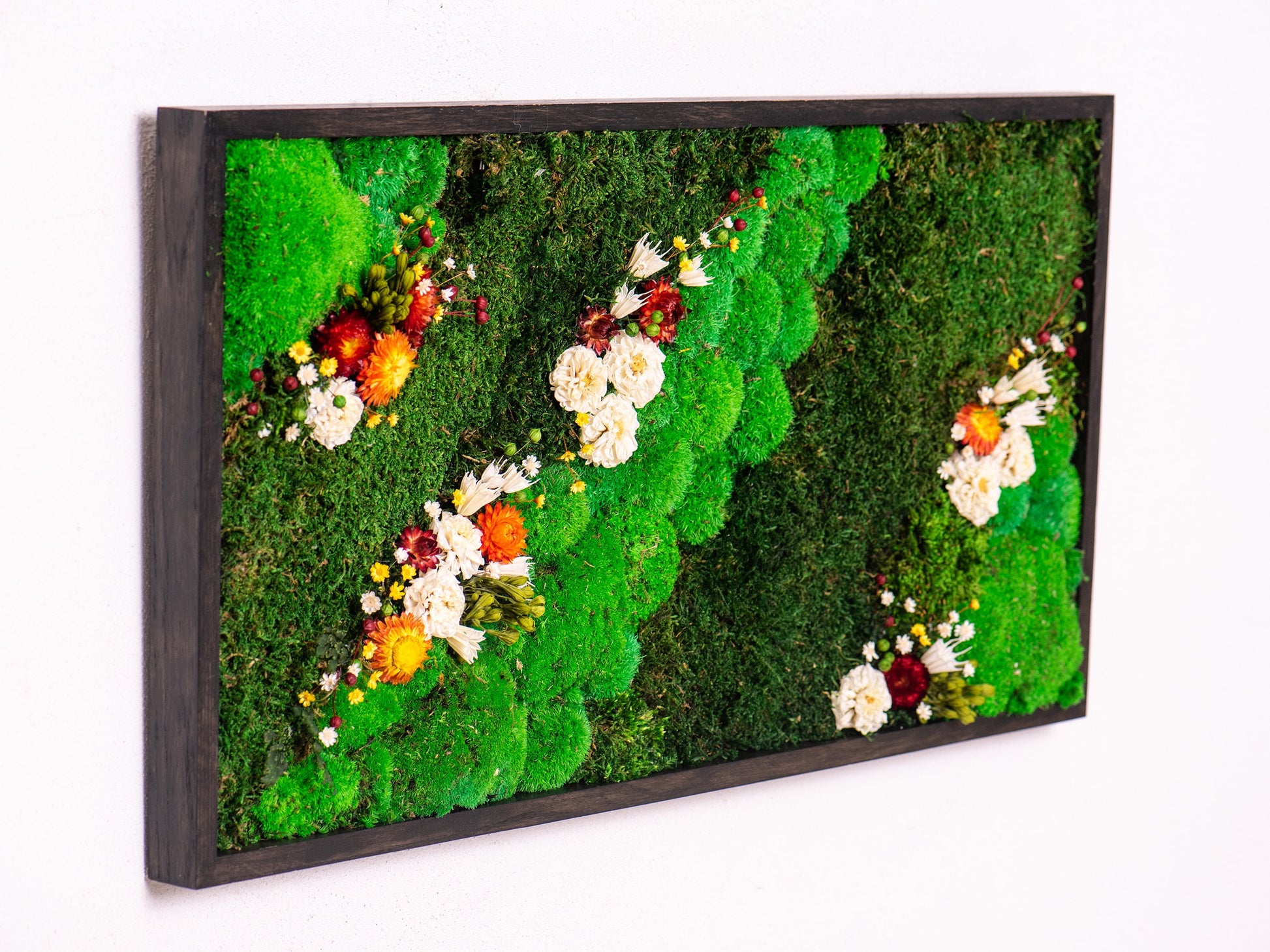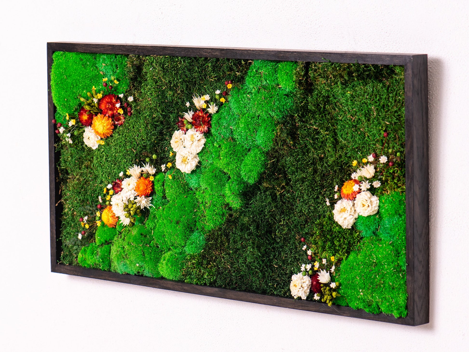 Introducing our Moss and Flowers Green Wall Art Panel, a unique piece of bio wall art that brings the beauty of nature indoors. This preserved moss indoor vertical garden is a stunning addition to any interior space, offering a touch of greenery that requires minimal maintenance.
