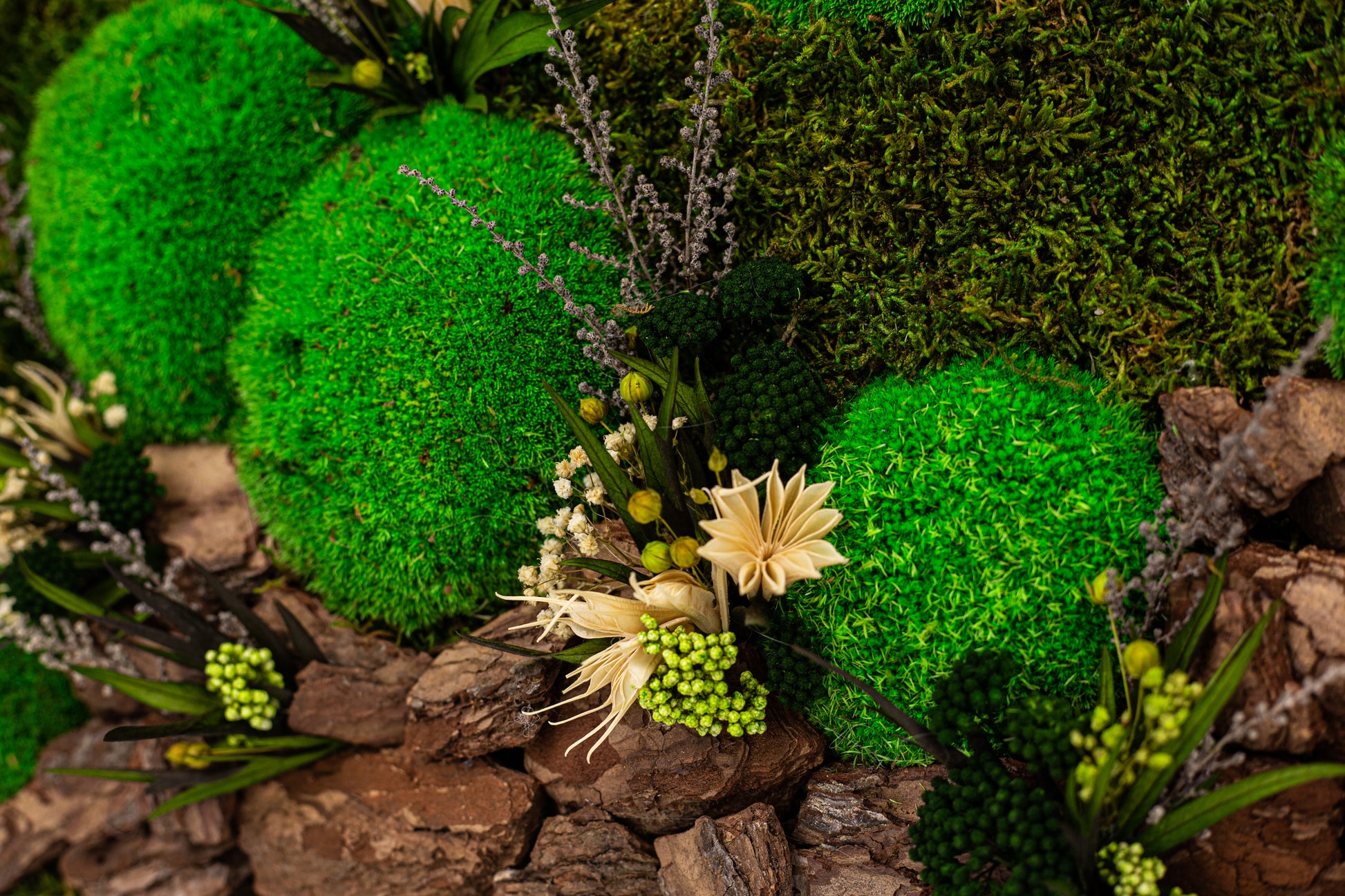 • Materials: oak, live moss, preserved moss, plant wall art, live plants, natural plants, natural wood, Reindeer moss, wood